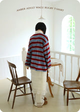 The Wagu Rugby T-shirt, which is great for matching anywhere, is made of a 20-count single-stripe, wide-legged fabric, making it great for daily wear during the in-between seasons.