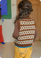 The Lind Jacquard Vest, featuring a vintage jacquard pattern, has better tension than regular knits and is comfortable to wear because it is loose. The scallop-shaped color blocking at the hem adds a pop of color to simple outfits! It comes in beige and brown, both basic colors that are easy to coordinate with many different outfits. It also looks great as a set-up with the 'Gren Knit Pants', so we highly recommend it.