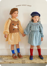 The waist is softly elasticated, making it easy for children to put on and take off on their own! It pairs well with knits, cardigans, and simple t-shirts, and it looks great paired with the "roasting blouse" as a set, so I highly recommend it.