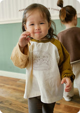 This two-way baby lamb t-shirt is easy to coordinate with any outfit, and it's made of a warm, stretchy cotton fabric. The amber-inspired print on the front and back adds a touch of cuteness! It's also easy to wear because it can be worn front or back. The basic design pairs well with a variety of bottoms, so I highly recommend it!