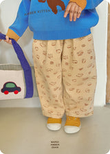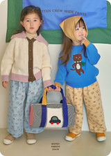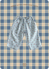 These Kitten Crew wide pants, filled with adorable cats, are made of sturdy cotton twill with wide lines, making them easy for kids to move around in! They come in two toned-down colors—yellow and blue—for easy coordination. Complete your fall look with a pair of these adorable Kitten Crew wide pants