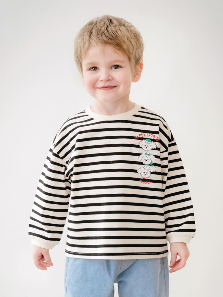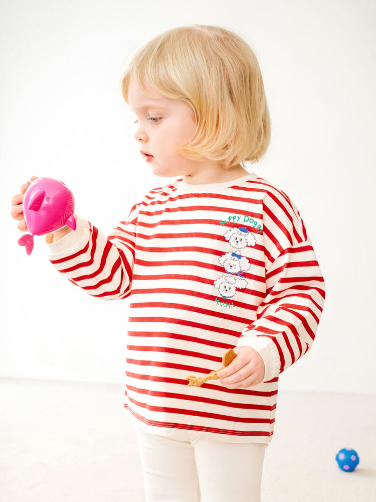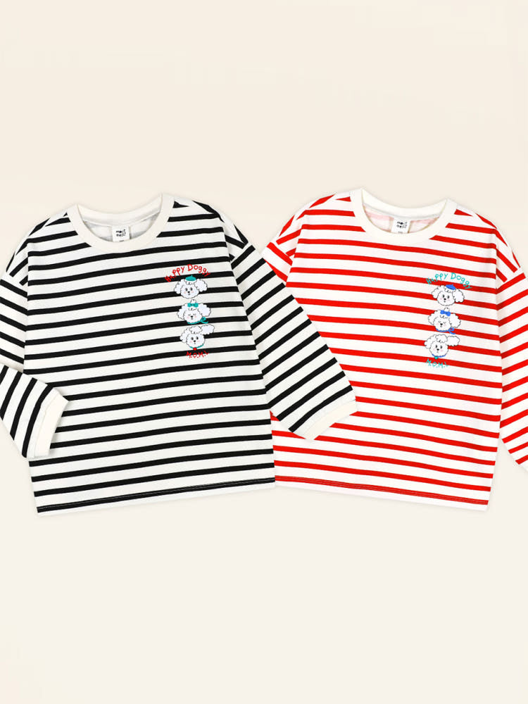 Puppy Stripe Black Red Heart T-shirt