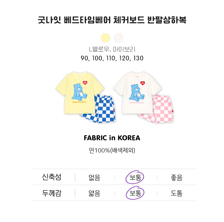 [Care Bear] Good Night Bedtime Bear Checkerboard Short Sleeves Set