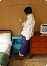 The adult Junie Pants feature drawstrings and stoppers at the hem, so when left uncinched, they become roomy wide-fit straight pants, or when cinched, they become jogger pants. They look great paired with the accompanying "Adult Fluffy Fleece Zip-Up," or paired with the children's "Juniper Fleece Pants" for a cute couple look (✿◡‿◡)