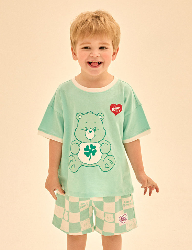 【愛心熊】晚安睡前小熊棋盤格短袖套裝